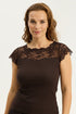 Feminin rib top med blonde. Blusen er fremstillet i en blød, ribstrikket kvalitet, der sikrer en god komfort og pæn pasform. Den smukke blonde over brystet, ryggen og ærmerne, tilføjer et elegant touch.
