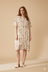Flot kjole fra IN FRONT. Halskant med lille standkrave og knaplukning hele vejen ned. Kjolen har syninger henover brystet, der giver en flot rynkeeffekt. Kjolen har en rummelig pasform - En dejlig luftig sommerkjole.