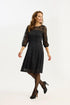 Feminin kjole fra IN FRONT i en flot blonde. Smuk kjole med rund halsudskæring og knaplukning i nakken. Ærmer i trekvart længde med elastikkant. Foran er der en skæring og herunder smalle læg ned foran på kjolen, der giver en klædelig svingvidde på skørtet. Kjolen er foret på for og bagstykket, fra brystkasen og ned. En festlig og elegant kjole.