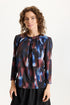 Feminin bluse fra IN FRONT. Blusen har trekvart lange ærmer med rynker på skulderen og en lille slids med knaplukning i nakken. Halsen har fine læg der går ned over forstykket. Blusen er lavet i et dejligt blødt og strækbart jersey materiale. En smuk bluse som er flot til hverdag og arbejde.