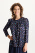 Feminin bluse fra IN FRONT. Blusen har trekvart lange ærmer med rynker på skulderen og en lille slids med knaplukning i nakken. Halsen har fine læg der går ned over forstykket. Blusen er lavet i et dejligt blødt og strækbart jersey materiale. En smuk bluse som er flot til hverdag og arbejde.