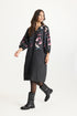 Smuk kjole fra IN FRONT i en let og blød viskoseblanding. Kjolen har et unikt blomsterprint, der giver et feminint udtryk, og er designet med en V-hals, en stolpelukning med fine knapper. De trekvartlange ærmer har en fin elastikkant forneden, som skaber en flot, let pufeffekt. Kjolen har et let og behageligt fald og en længde, der går til under knæet.
