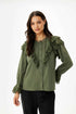 Feminin skjorte fra IN FRONT med smukke blonder og flæser på forsiden og skuldrer. Lange ærmer, ligeledes med blonder ved håndleddet. Smuk bluse til hverdag og fest.