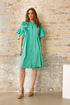 Smuk kortærmet skjortekjole fra IN FRONT. Super flot kjole med lille flæsekrave, knapper hele vejen ned og smalle lodrette læg foran på brystet. Korte drop skulder ærmer og en bred flæsekant på ærmeafslutningen. 2 store påsyede roser dekorerer kjolen.